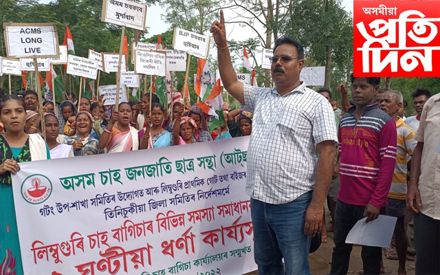শ্ৰম মন্ত্ৰী সঞ্জয় কিষাণ মুৰ্দাবাদ ধ্বনিৰে উত্তাল তিনিচুকীয়াৰ লিম্বুগুৰি চাহ বাগিছা